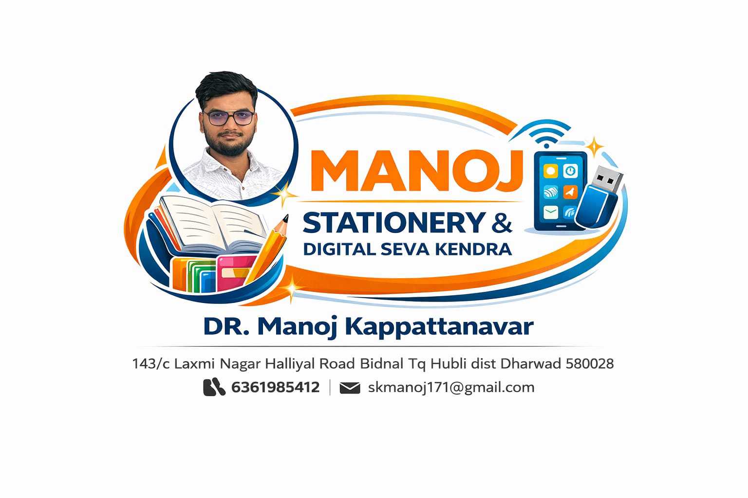 At Manoj Stationary and Digital Seva Kendra, we bring together the convenience of a stationary & general store with the efficiency of a digital service center. Located in Bidnal TQ, Hubli, District Dharwad, our mission is to provide customers with quality products, reliable services, and complete solutions under one roof.